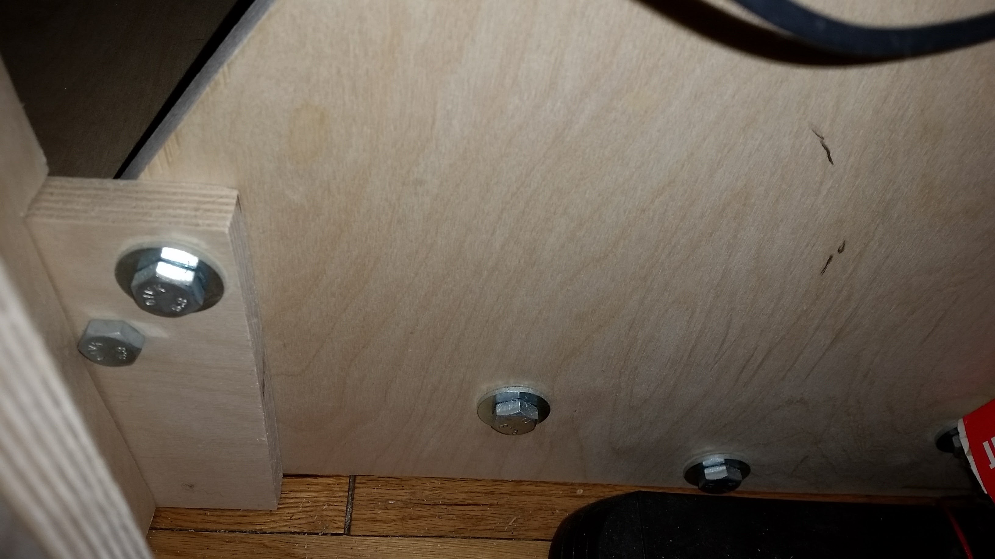 Naturally, there were a few mistakes. First, the shifter didn't even fit. I had to move the panel it was supposed to attach to about two centimetres back, and the rest of the assembly two centimetres forward to compensate. Then after trying it the first time, I realized the wheel was about 3.5 inches too high (why I'm so inconsistent with units I don't know. I blame the US for not adopting the metric system when they had the chance. That's 90mm for the rest of the world). After fixing that, I finally screwed down the seat rails I had left sliding on the base for months; I tried to estimate where to put them to center the seat and ended up around two inches off. Finally, earlier tonight, I undid that and moved them to an appropriate location. Now it rocks!