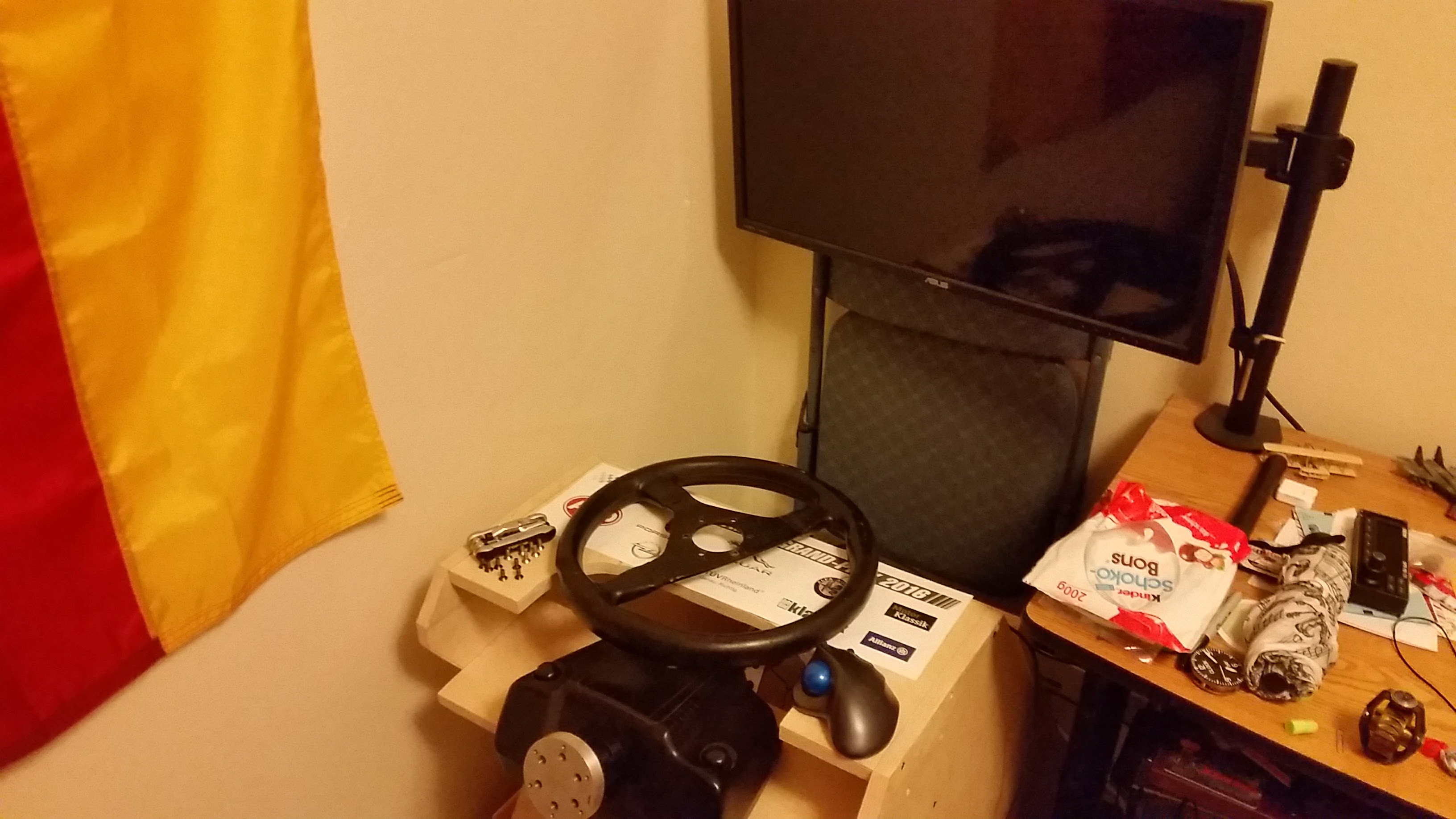 If you want to build your own sim racing console, you may or may not be able to use the plans here. I think it is quite likely you would be able to use them with at most slight modifications, and I will try to call out where that may be necessary in the following paragraphs, but do make sure you have enough space for whatever you build and that you will fit in it comfortably! If you are not sure how to determine those answers, make educated guesses; that's what I did for most of this process.